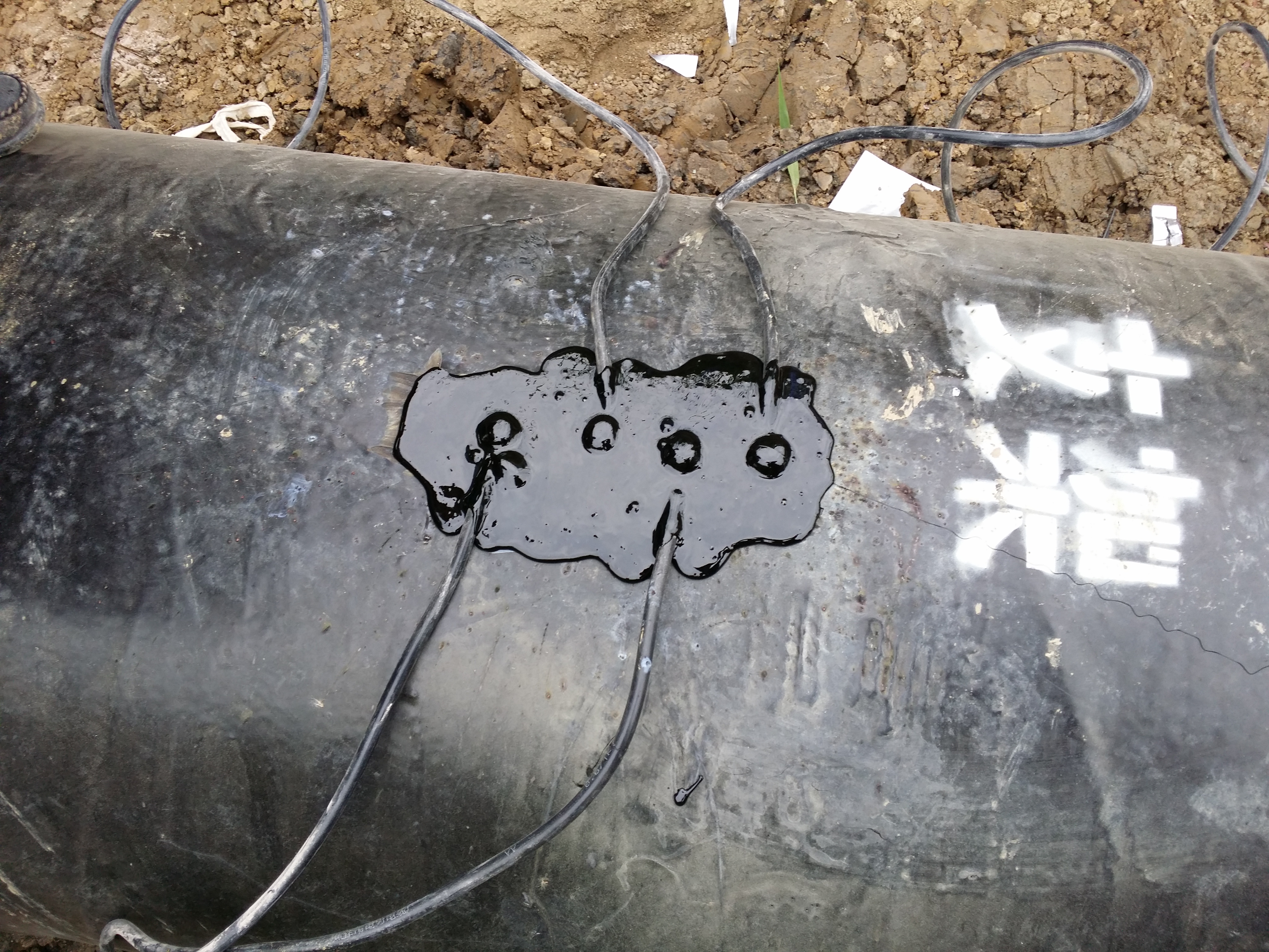 以镁合金牺牲阳极为例,其主要构造方法如下:1、将镁合金牺牲阳极和参比电极放入坑中,在管线的正上方开一个圆孔并露出金属管壁,清理干净表面的油污、底漆还有氧化膜,将阴极电缆的铜芯用铝热焊剂焊接到管道上,在焊接处涂上热熔胶烘烤后用补伤片覆盖焊点处,再对管道包覆一道热收缩带;2、将各阳极引出电缆与阳极共用电缆采用机械连接,焊接后用热熔胶完全封固,烘烤后用电缆专用热收缩套密封;3、向阳极坑中浇水,将镁阳极浸透,经检查后回填,并将阴极电缆、阳极电缆和参比电极电缆分别连接到测试桩中的接线端子上;4、测试桩连接方式分电位测试桩和电流测试桩两种,全部采用涂塑钢管测试桩 电位/电流测试桩:将电缆用铝热焊连接到管道上,焊点进行防腐处理后通过测试桩底部引到接线板的接线端子上;5、待全部检查合格后,测试桩底部现场浇注C15混凝土固定,测试桩铭牌安装按要求进行,并标注编号、里程和桩型,铭牌正面与测试门在同一侧,要面对地床的方向。
